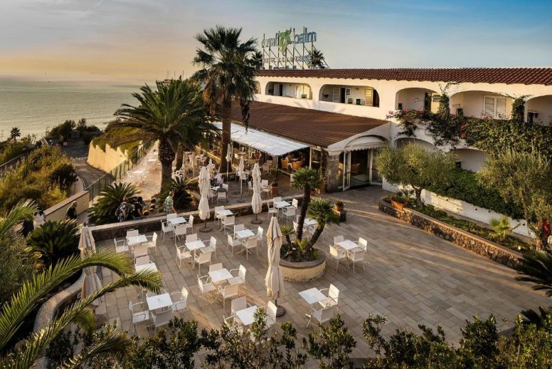 Informatii despre hotelHotelul Royal Palm Terme este un hotel elegant de 4 stele situat in Forio, cu vedere la minunatul Golf Citara. Aproape de Golf se afla cel mai mare parc termal de pe insula Ischia. Hotelul este compus din 250 de camere, precum si doua restaurante panoramice mari si barul cu vedere la golful Citara, oferind oaspetilor posibilitatea de a se bucura de privelisti minunate.Distanta- 200 m distanta de Plaja Spiaggia Cava Dell'Isola